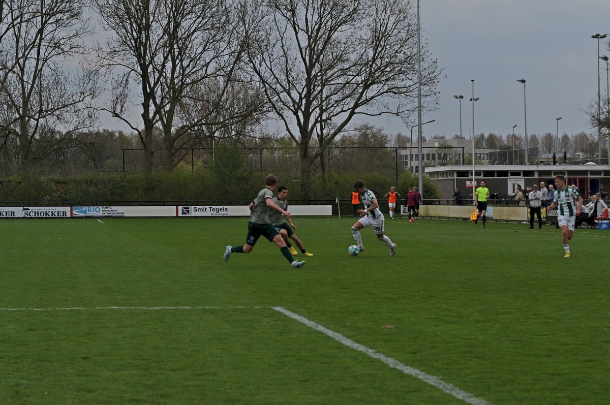 In de 24ste minuut een aanval van de gasten en dan is het Wouter Prins die een onnodige overtreding maakt in het strafschopgebied en dat wordt een penalty en die wordt benut door Sven Zitman, 0-1. Bij deze stand gaan beide ploegen rusten.